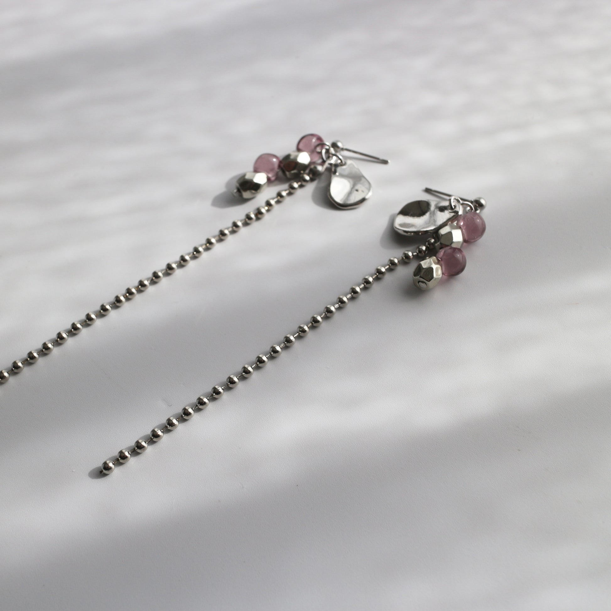 静かなリズムで揺れるイヤーアクセサリー。