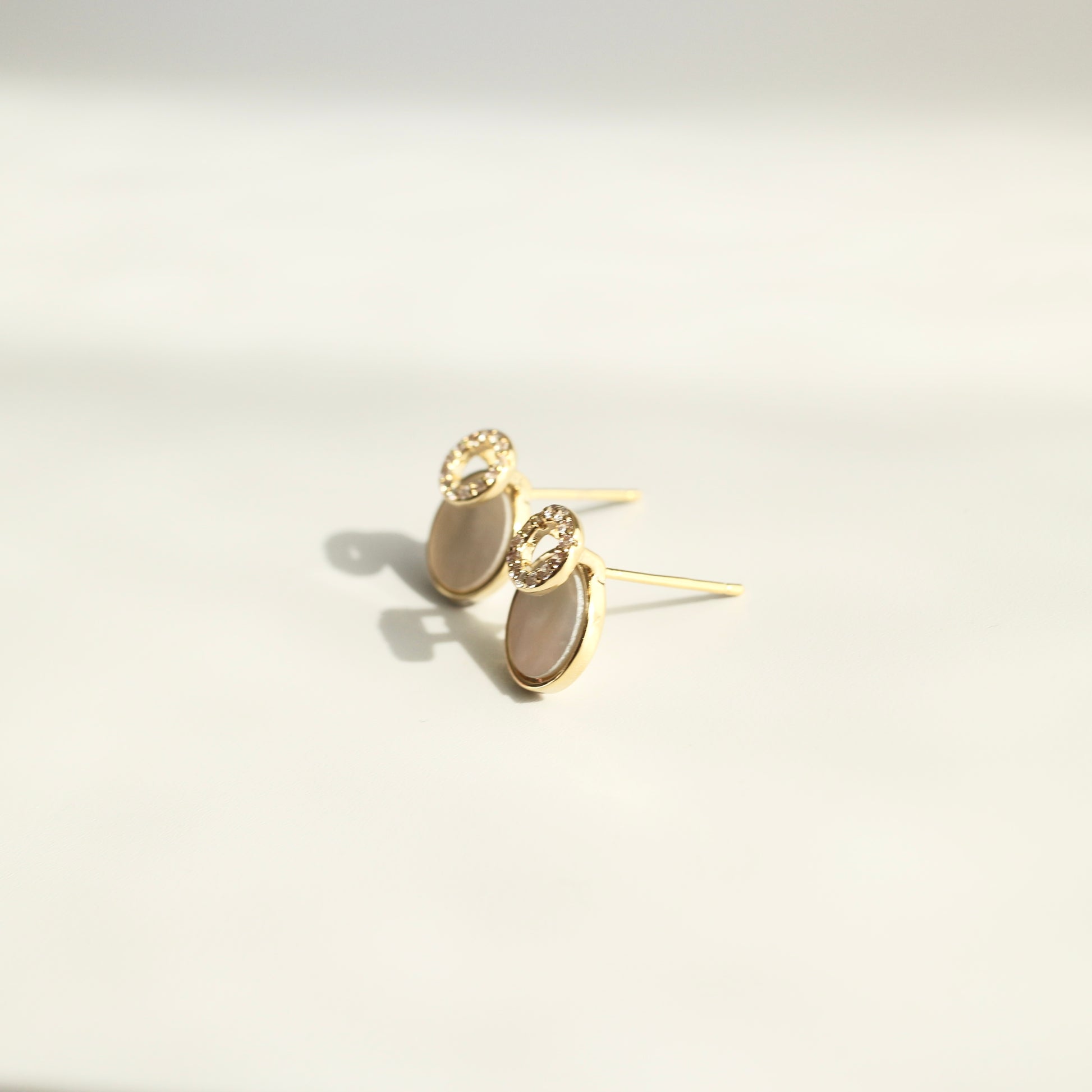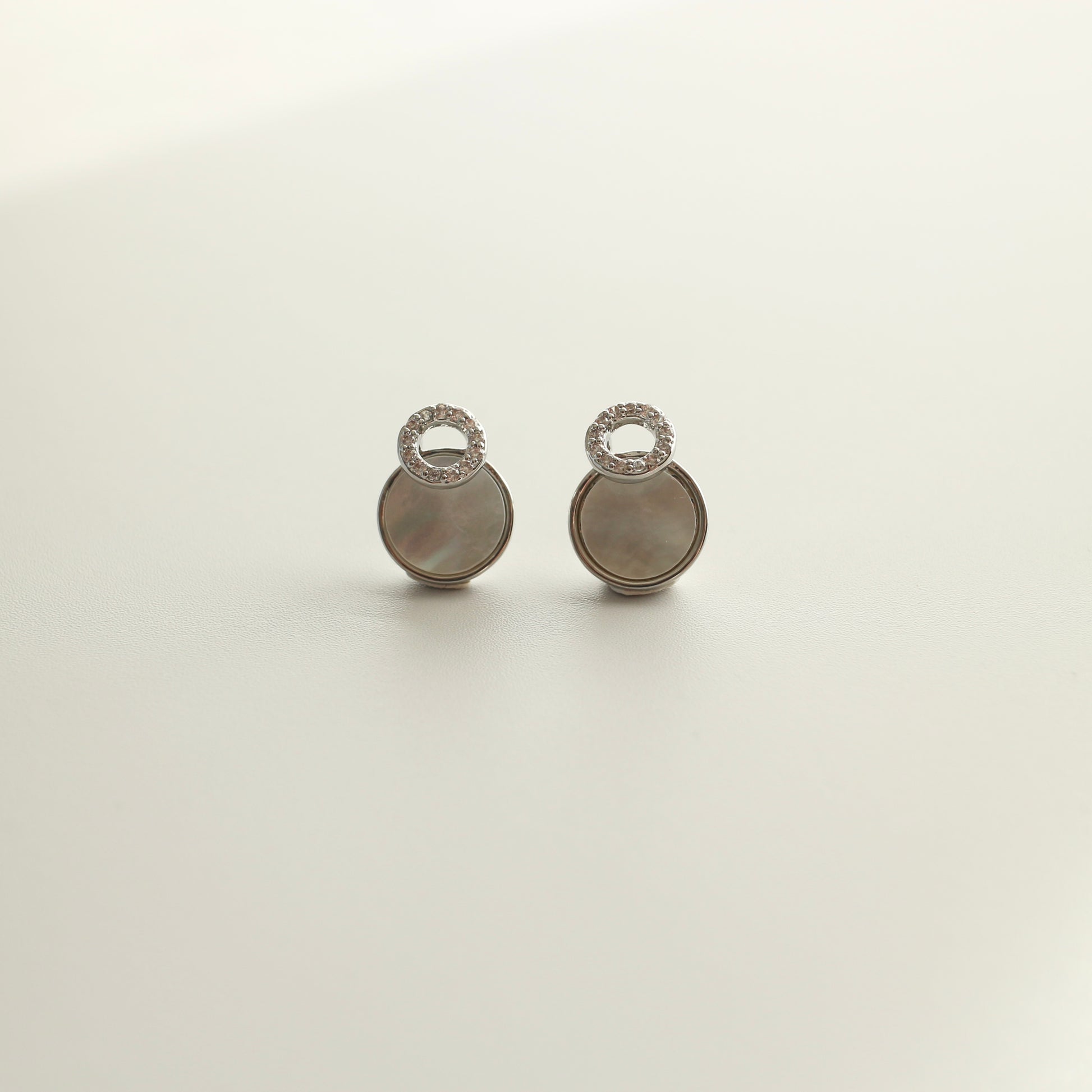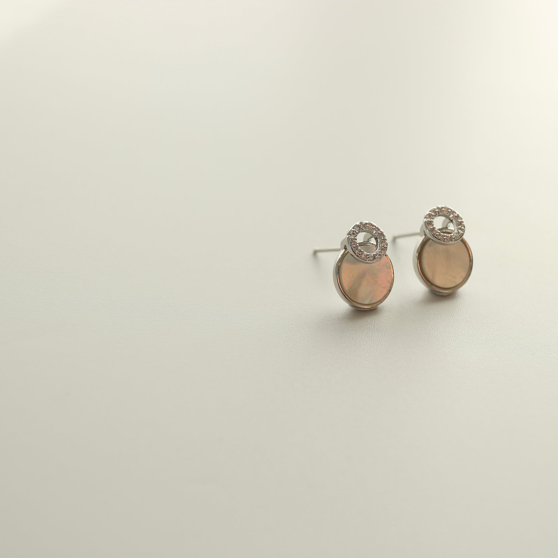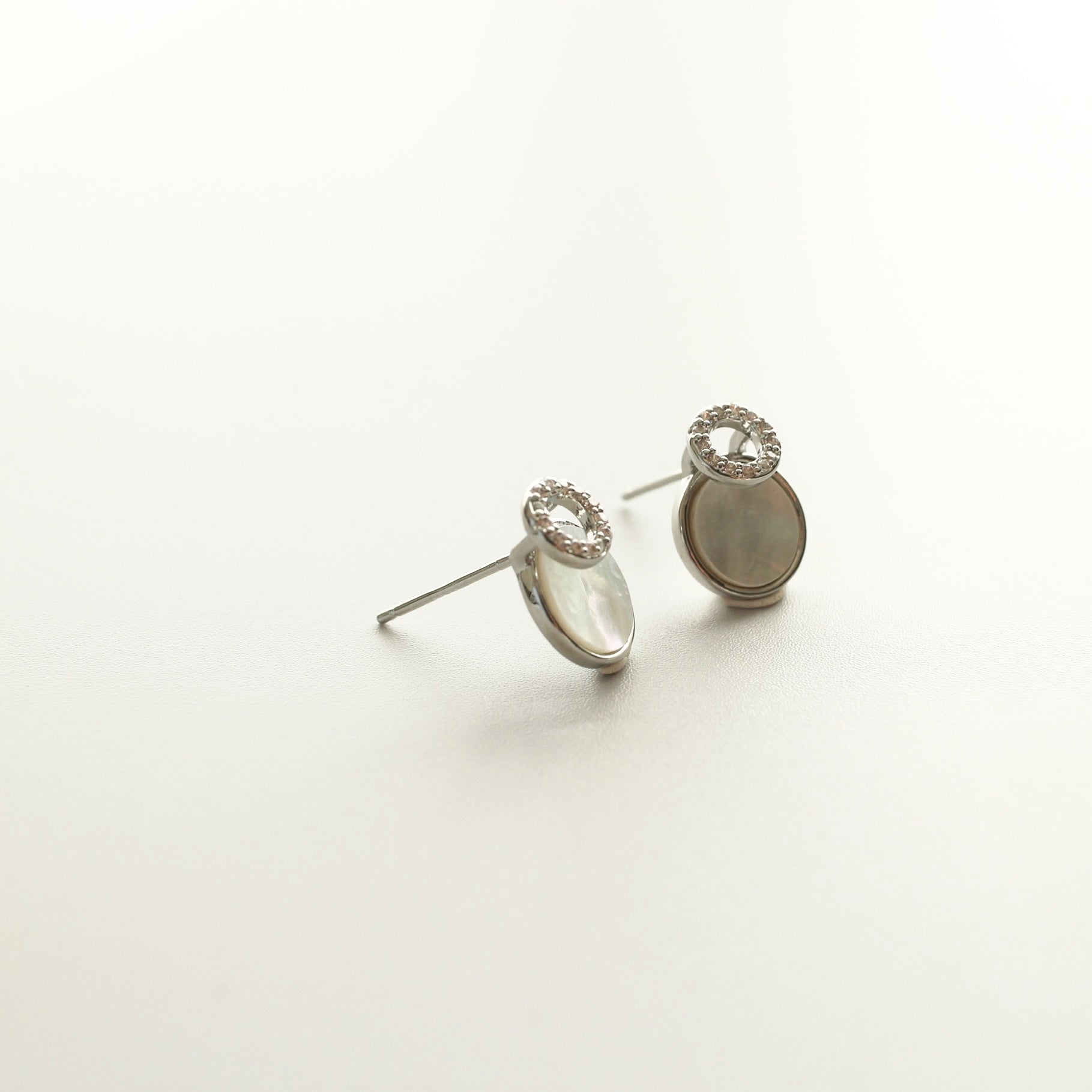やわらかく光を反射する、シェルのようなニュアンス素材を使用したピアス。