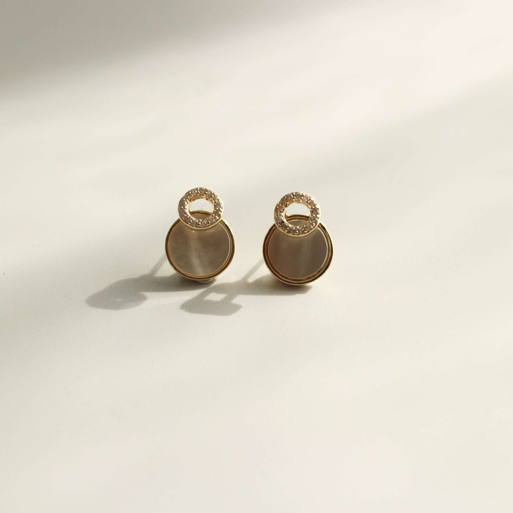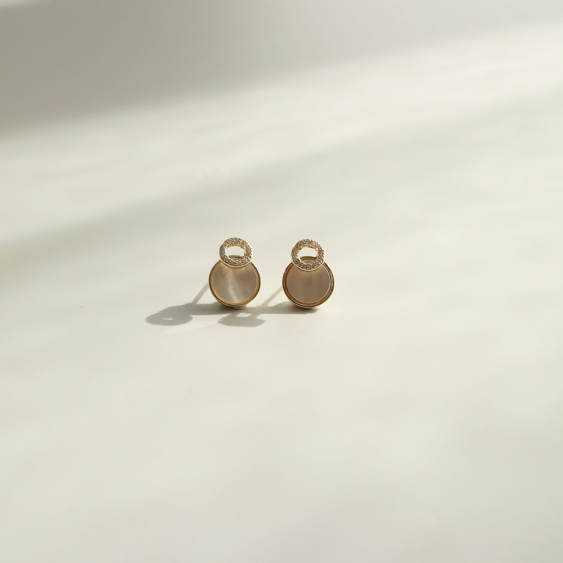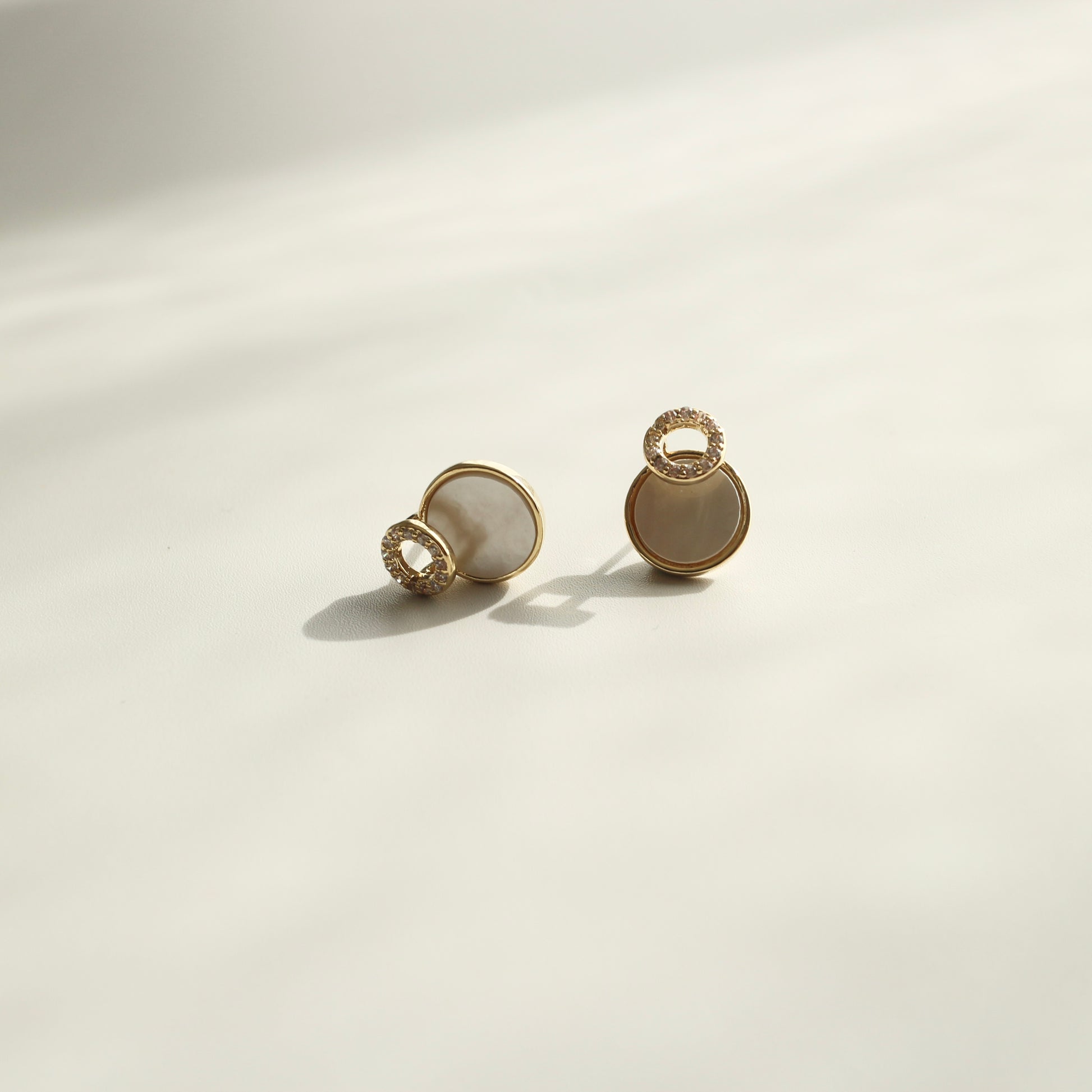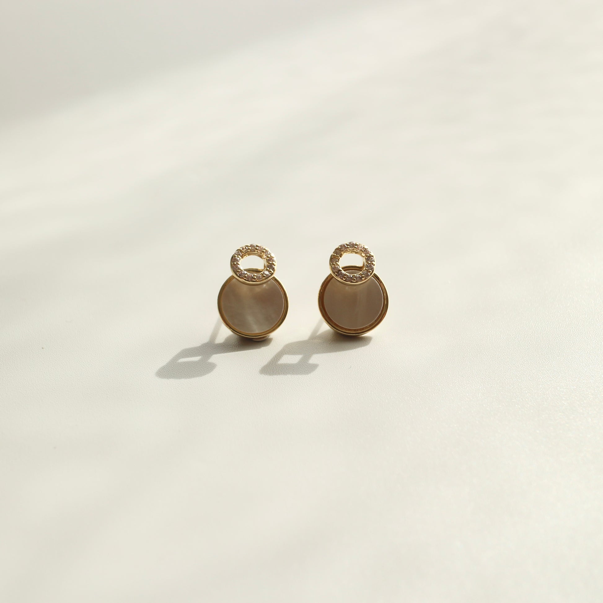 やわらかく光を反射する、シェルのようなニュアンス素材を使用したピアス。
