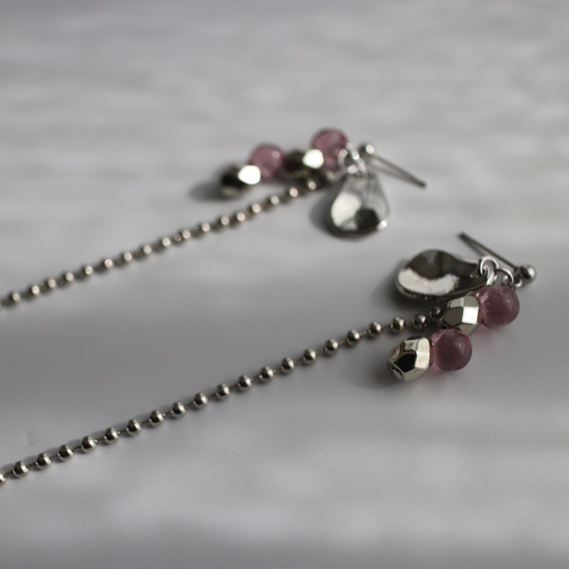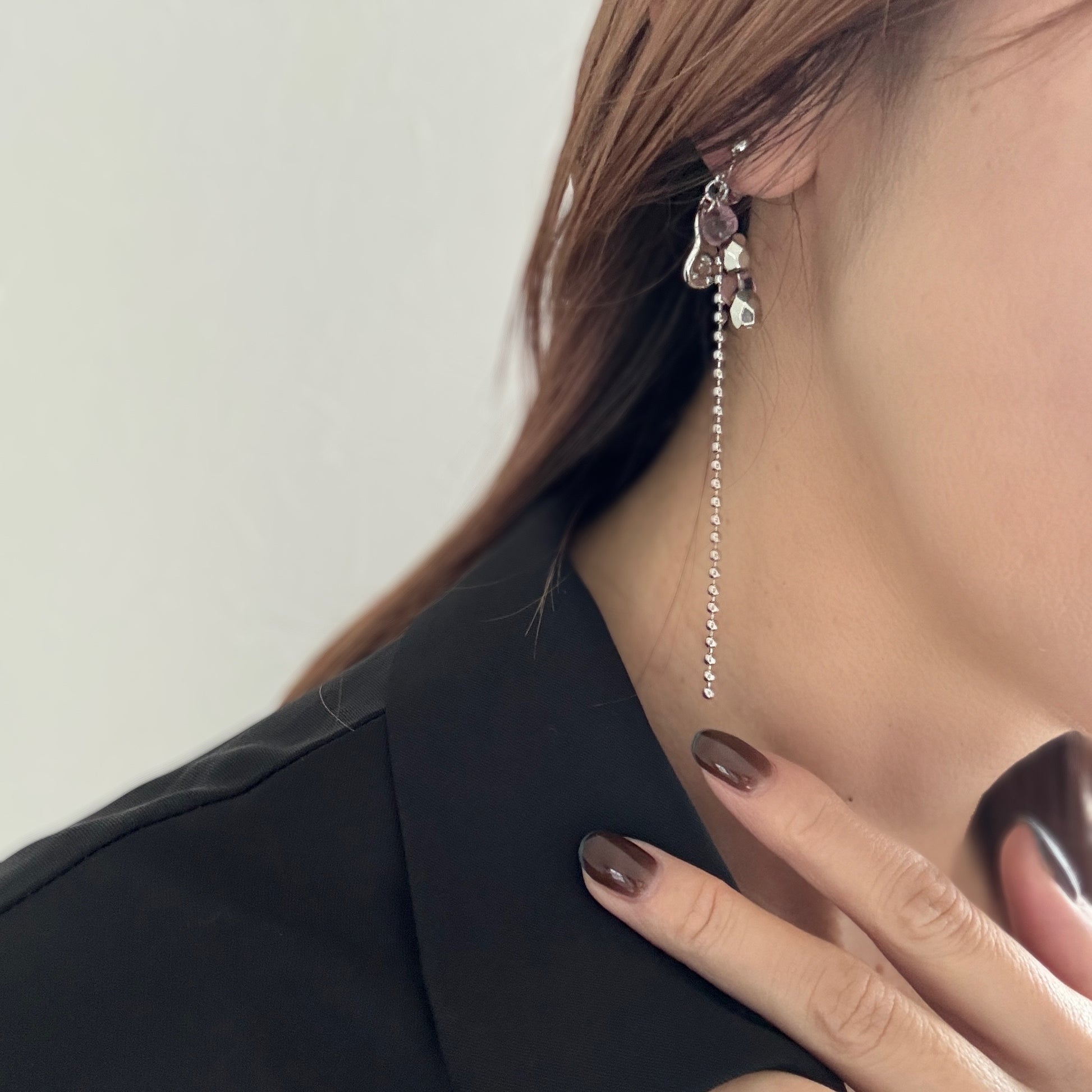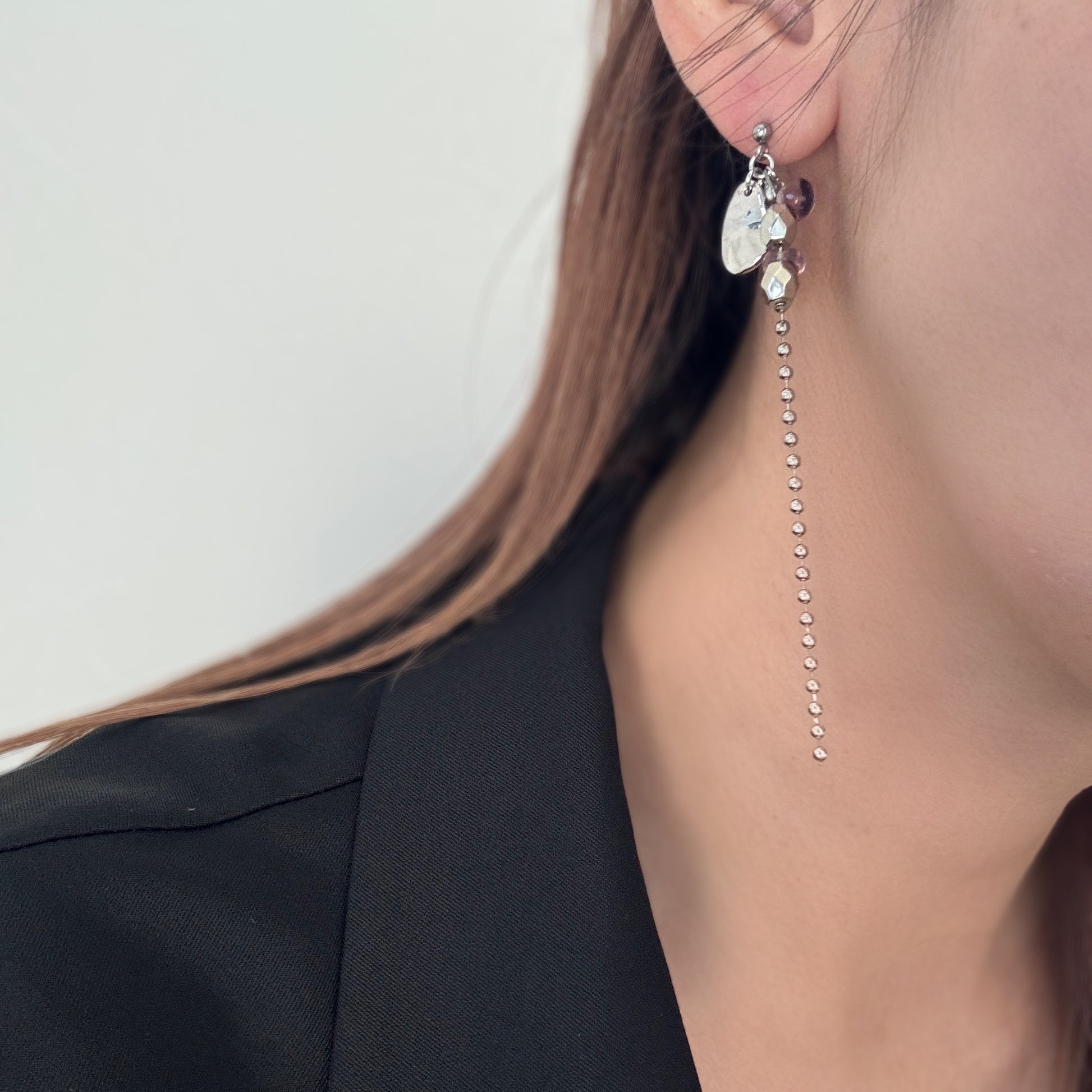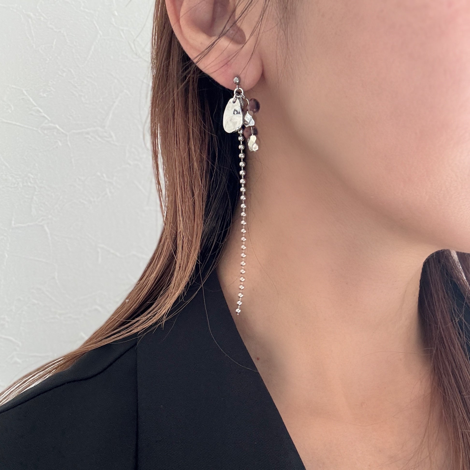 静かなリズムで揺れるイヤーアクセサリー。
