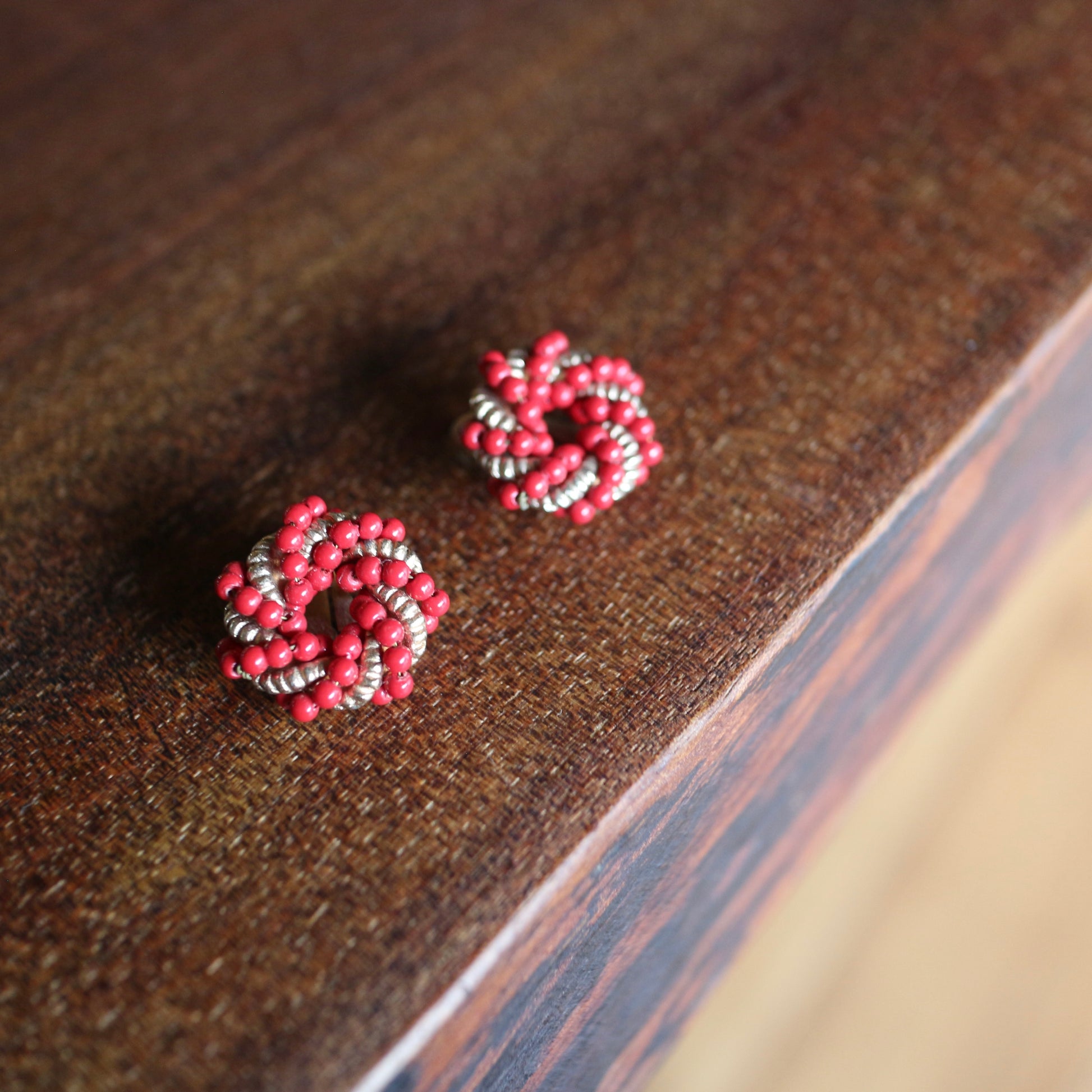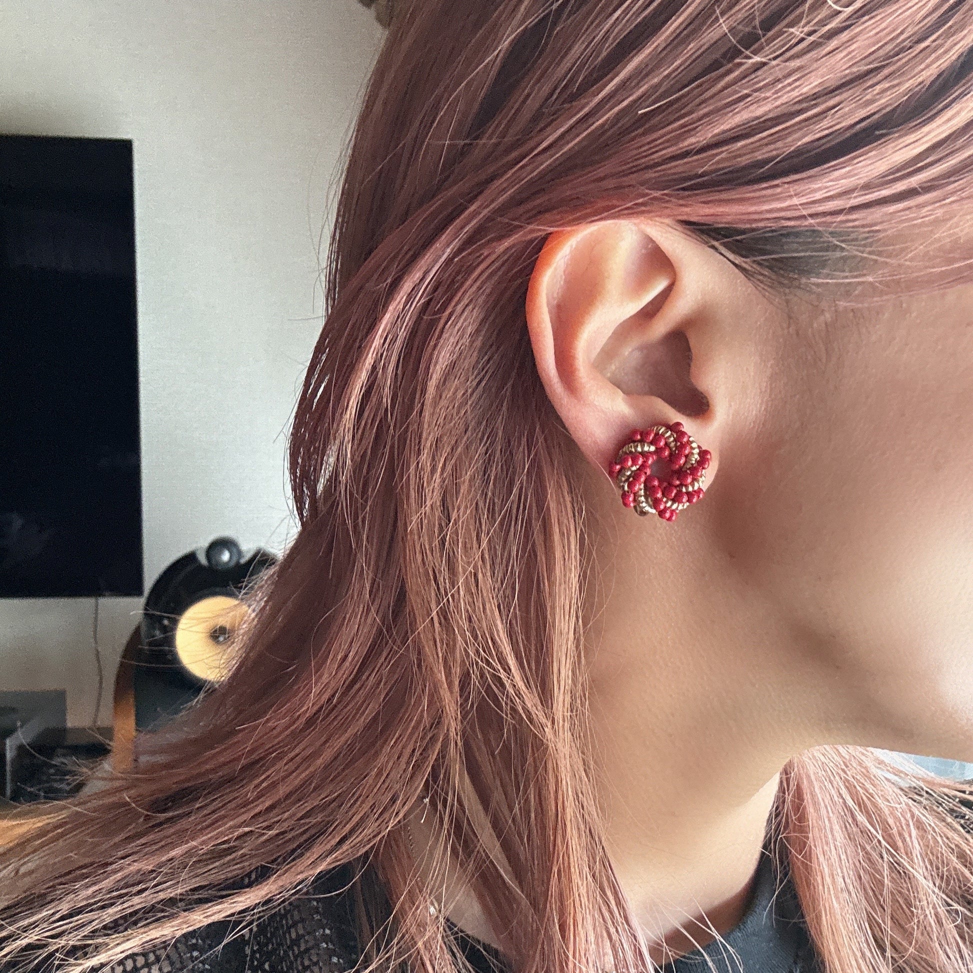 深みのあるレッドビーズとアンティーゴールドが織りなす、