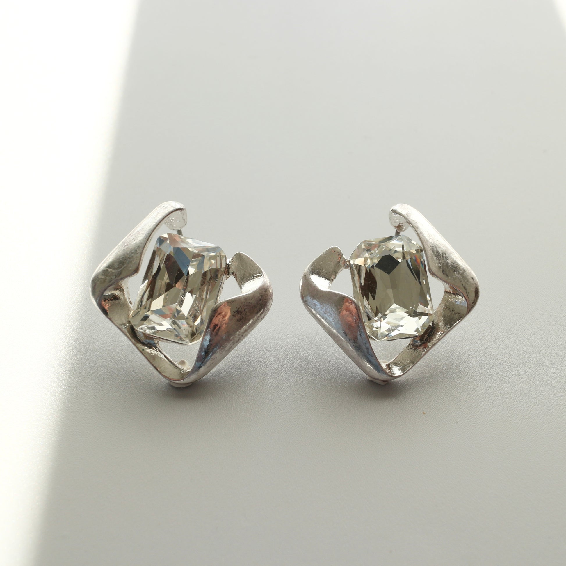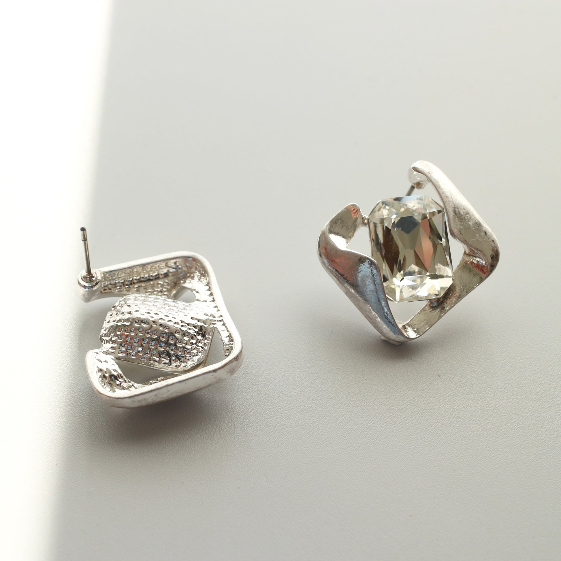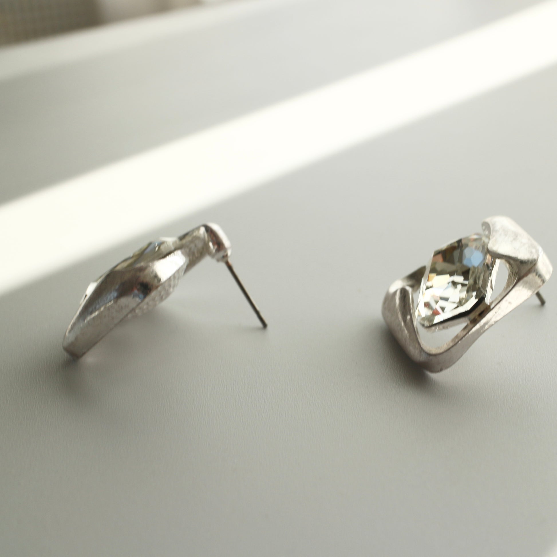 有機的なフォルムの中で輝くクリアストーンが、光をとらえて上品に煌めき、耳元に洗練された印象を添えます。