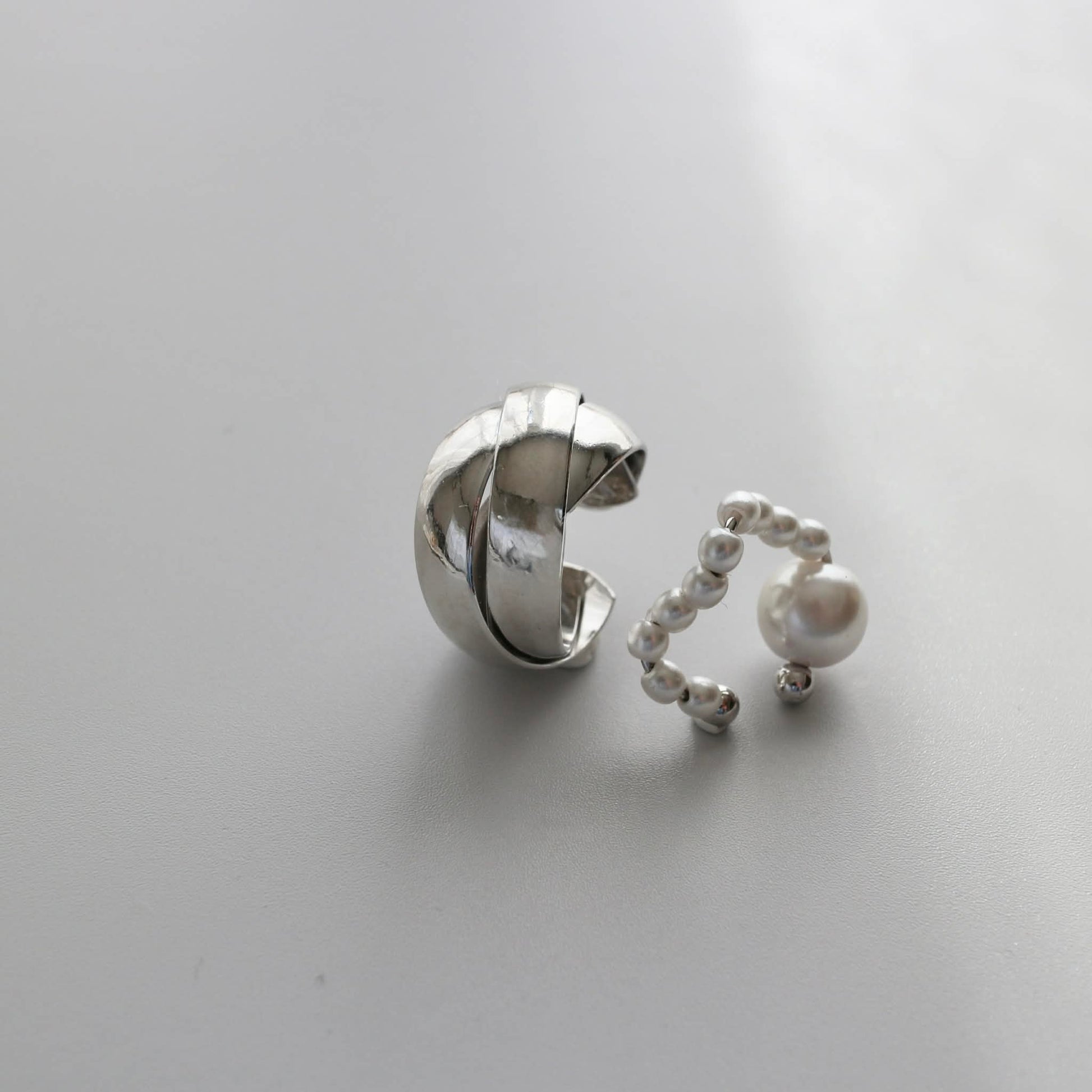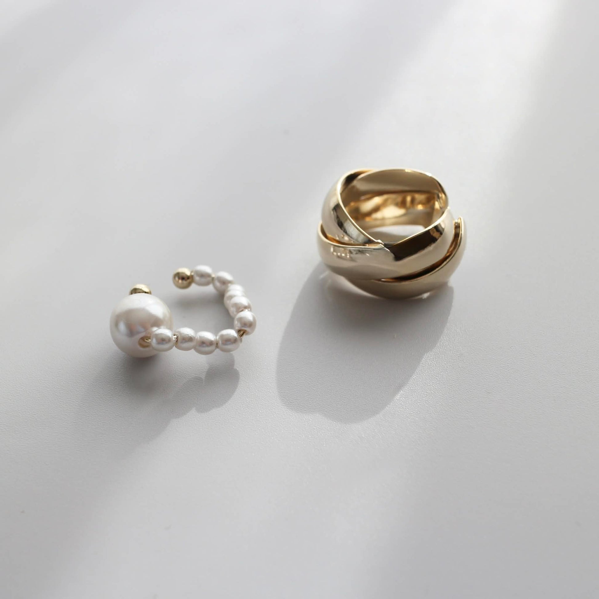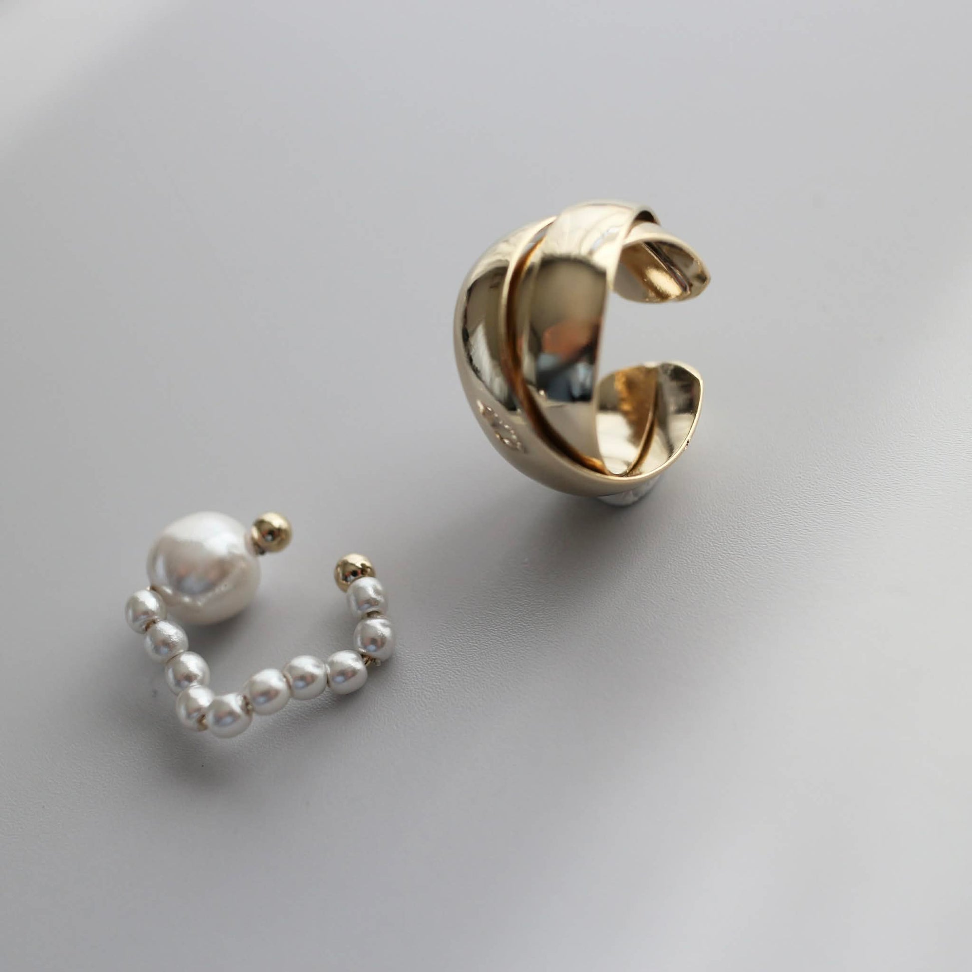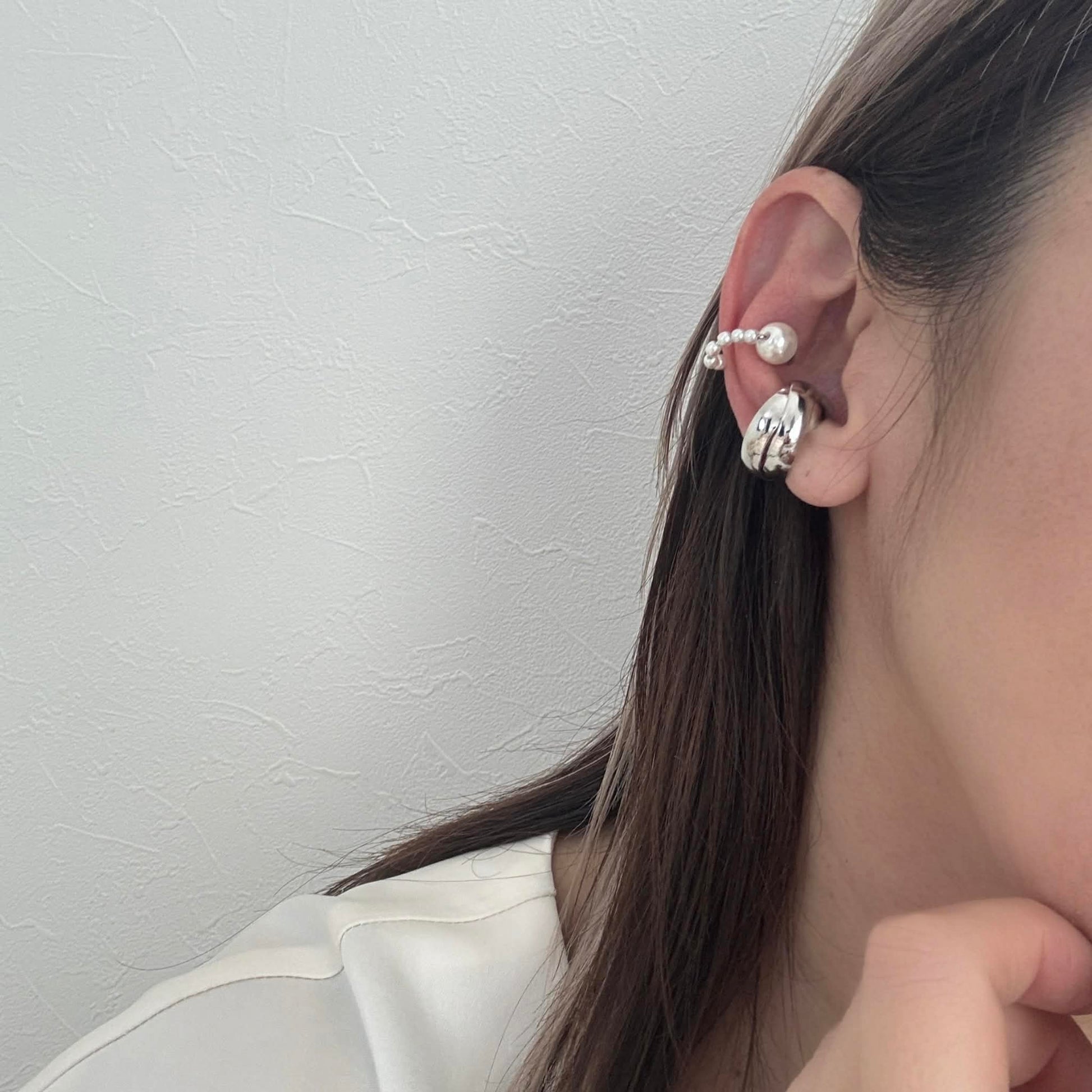 パールの軽やかさを添えたイヤーカフの2点セット。