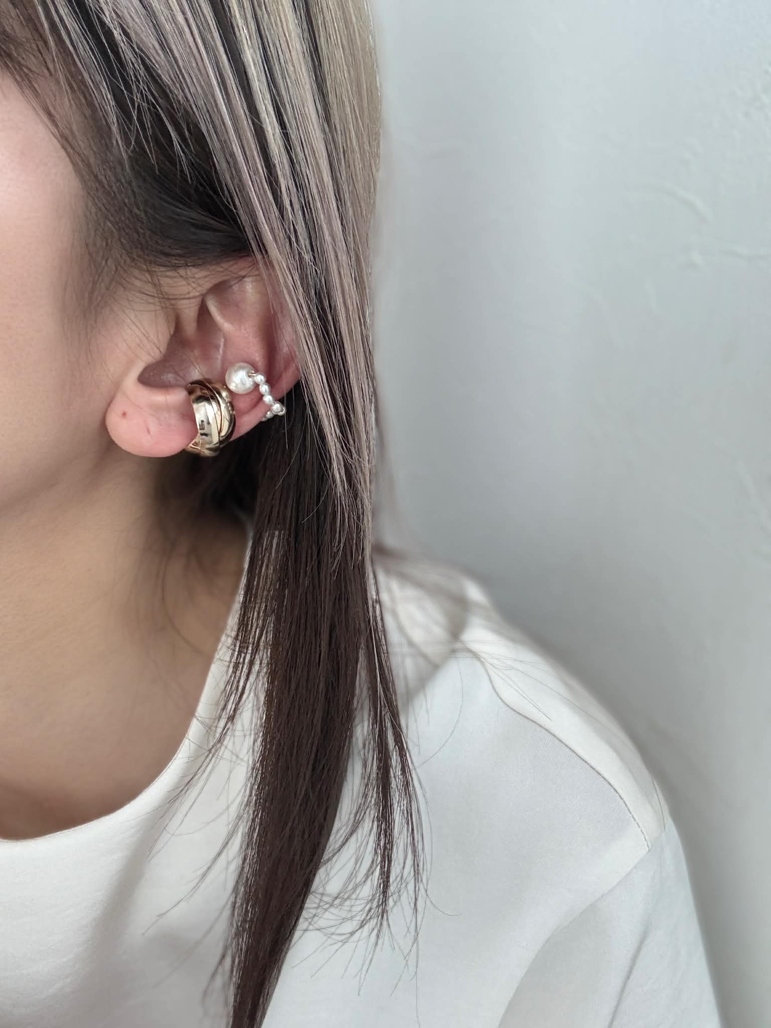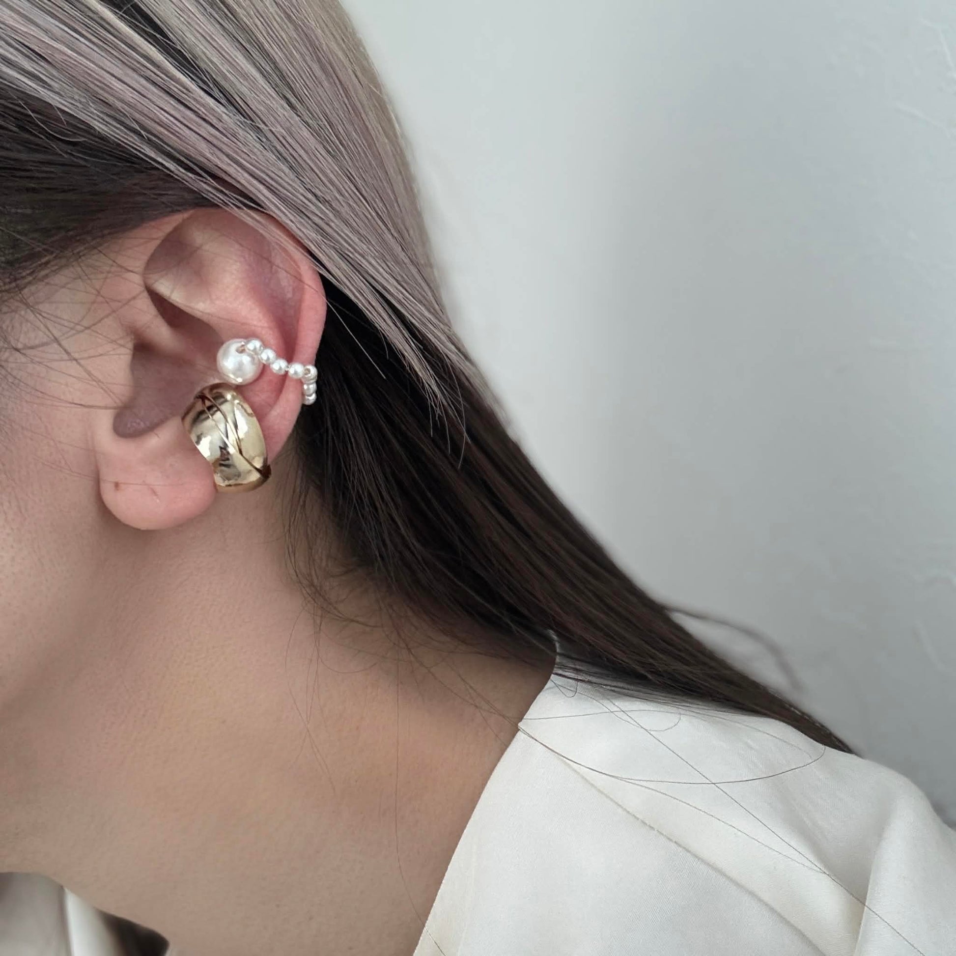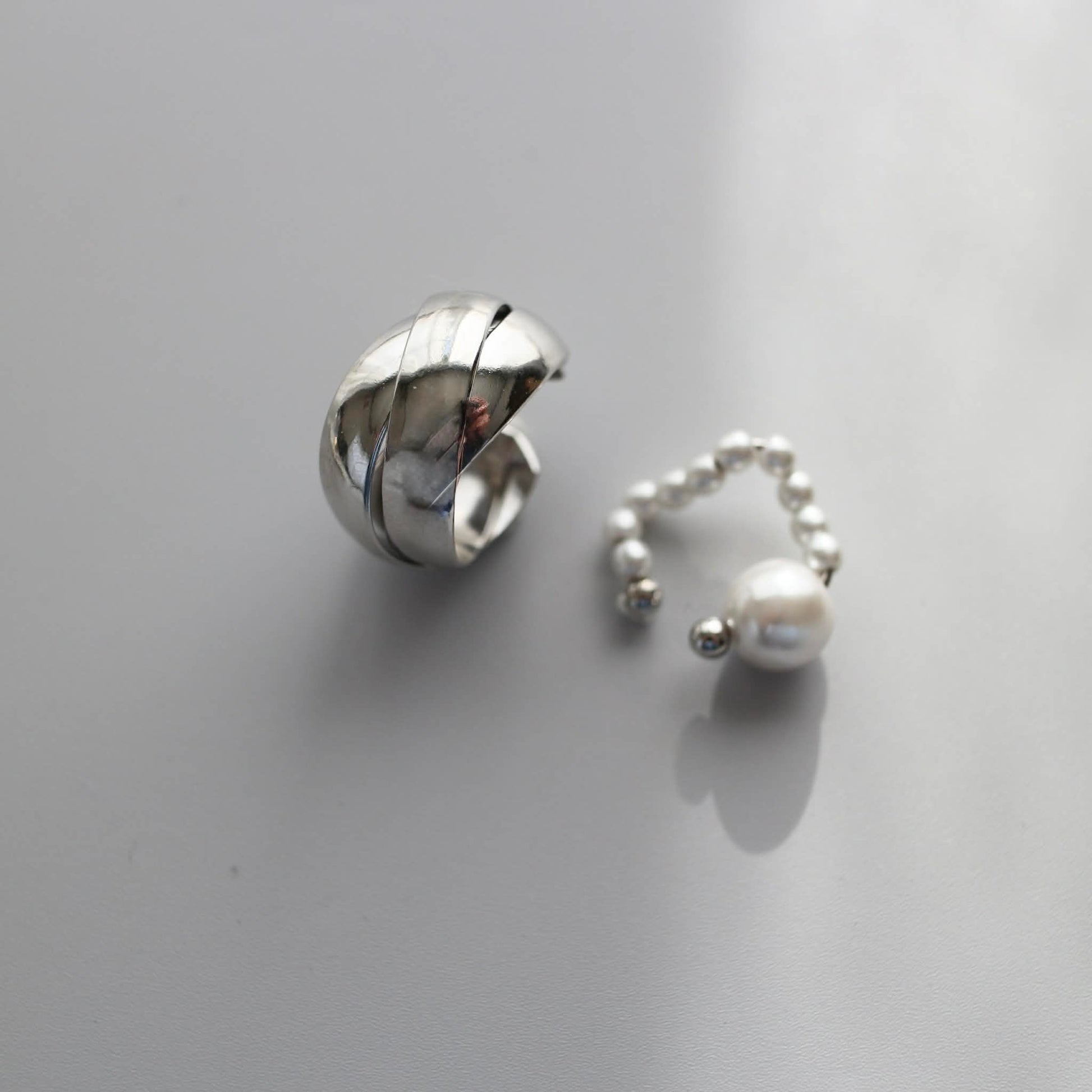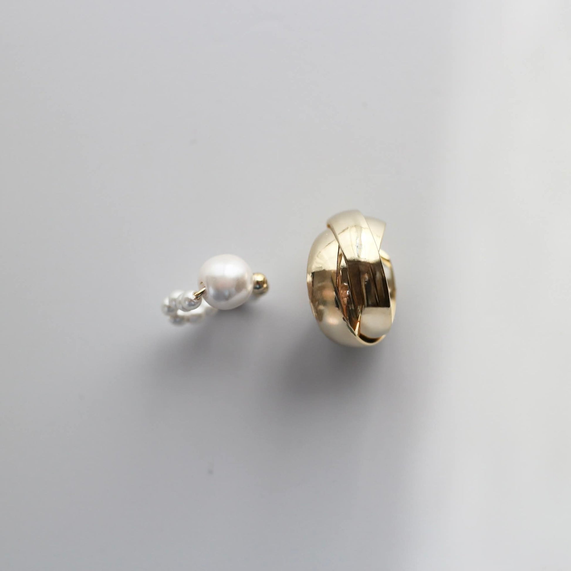パールの軽やかさを添えたイヤーカフの2点セット。