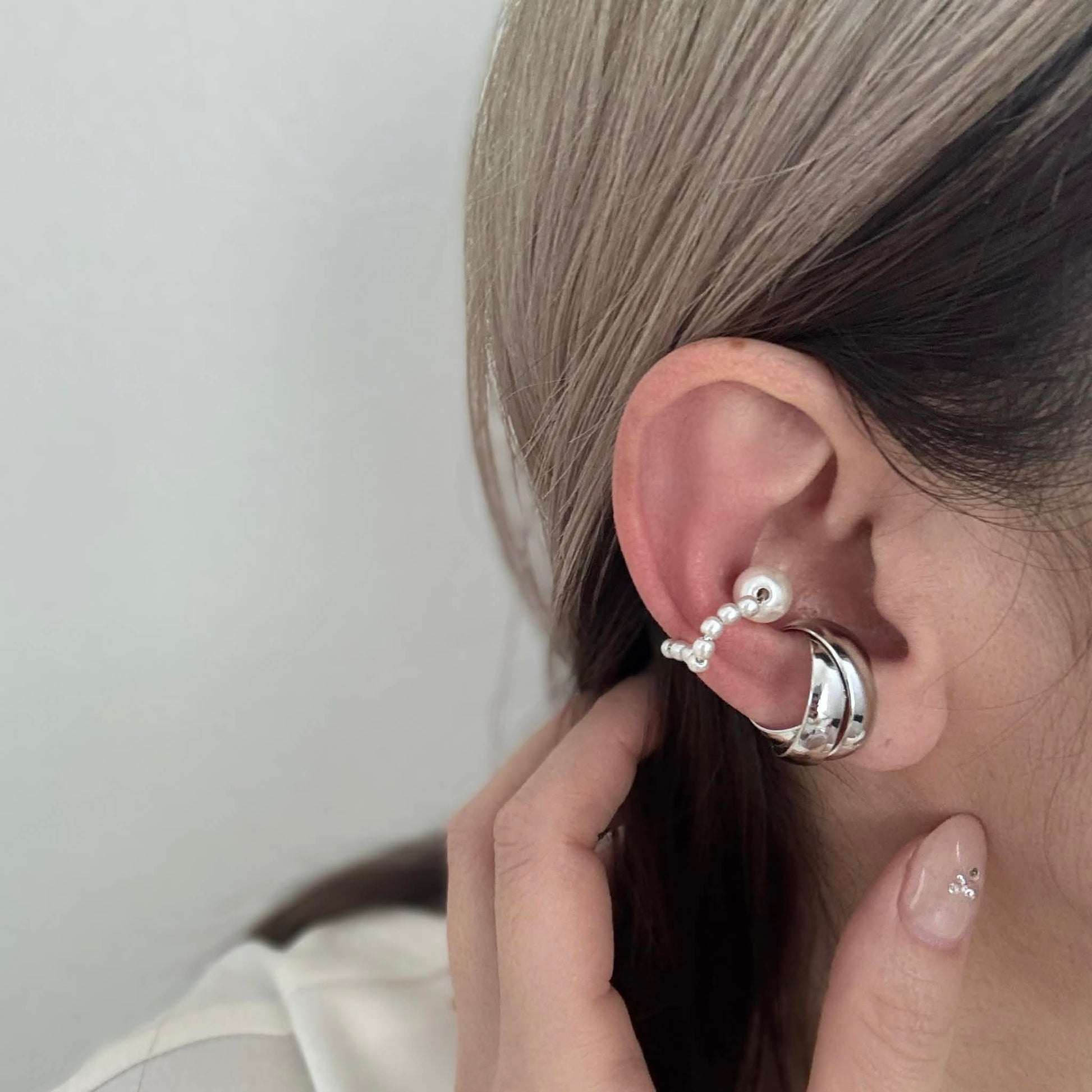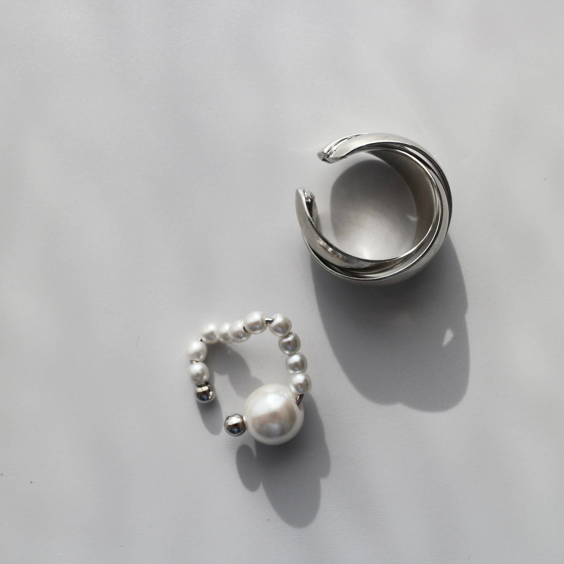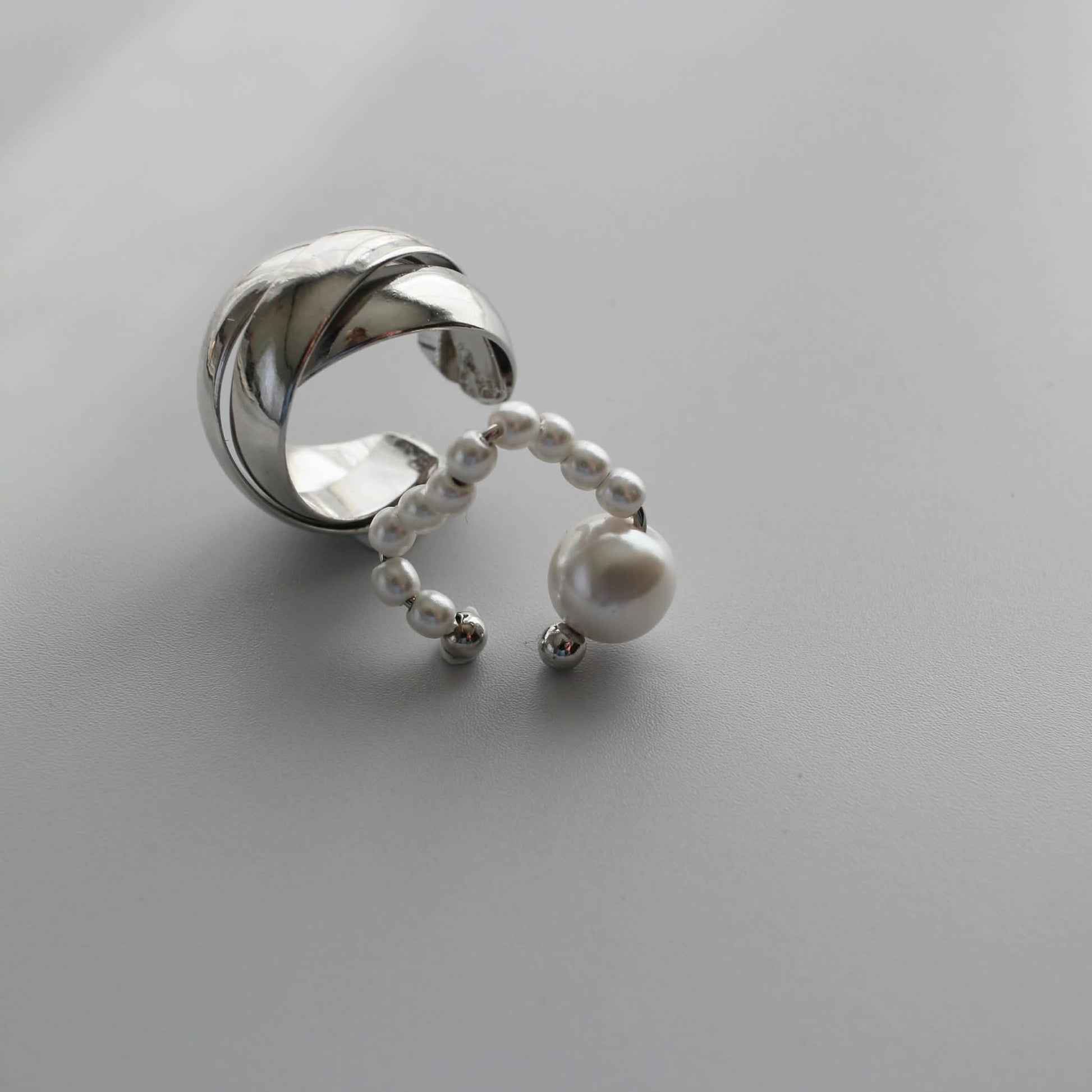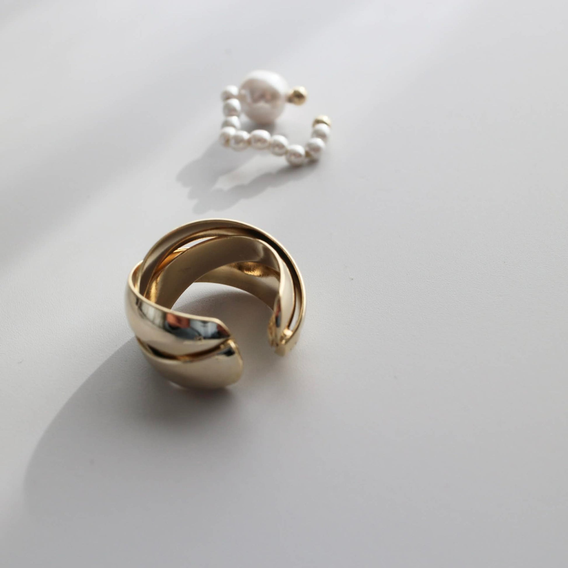 パールの軽やかさを添えたイヤーカフの2点セット。